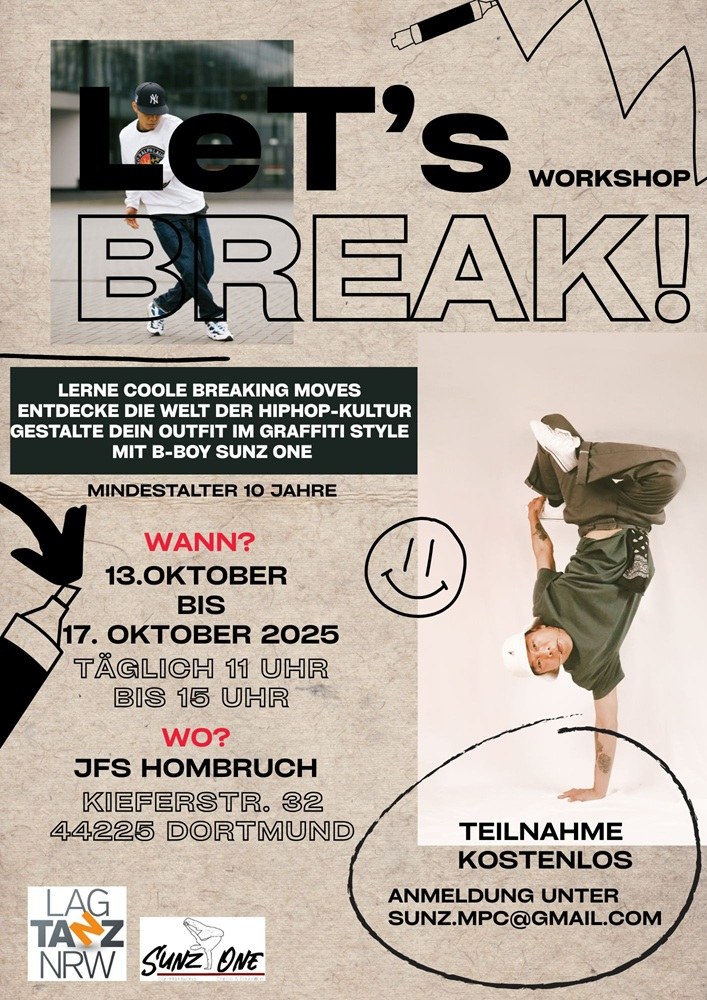 Das Projekt bestand in einem Tanzworkshop für Kinder und Jugendliche im Alter von 10 bis 14 Jahren und widmete sich intensiv dem Tanzstil "Breaking". Unter der Leiteung des professionellen Tänzers Sun-Ha Hwang, konnten die Teilnehmer*innen grundlegende Breaking-Techniken wie Toprock, Footwork, Powermoves und Freezes erlernen. Die Gruppe entwickelte eine Choreografie, welche am Ende des Workshops vor Publikum präsentiert wurde.